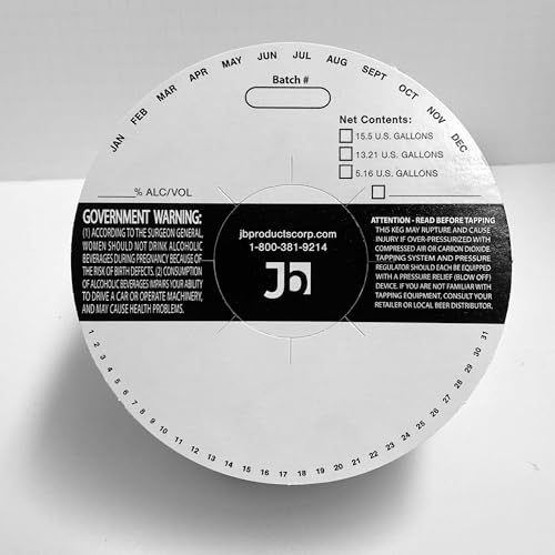 When you’re managing multiple kegs and need a reliable labeling system, these 7-inch generic write-in keg collars provide the perfect solution for organized brewers who value efficiency. Each collar features a scored ring in the center that makes application straightforward, while write-in sections let you customize labels with batch information, brewing dates, or beer styles. You can also use pre-inked stamps for consistent, professional-looking identification. These collars include required government warning and pressure-sensitive warning labels, ensuring your homebrew operation stays compliant with safety regulations. Made in the USA, each 100-piece pack delivers reliable quality for serious homebrewers who need durable, functional labeling solutions.